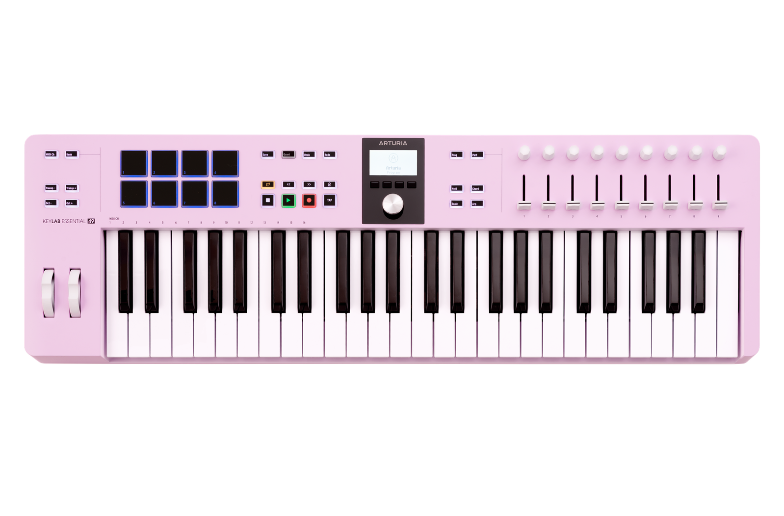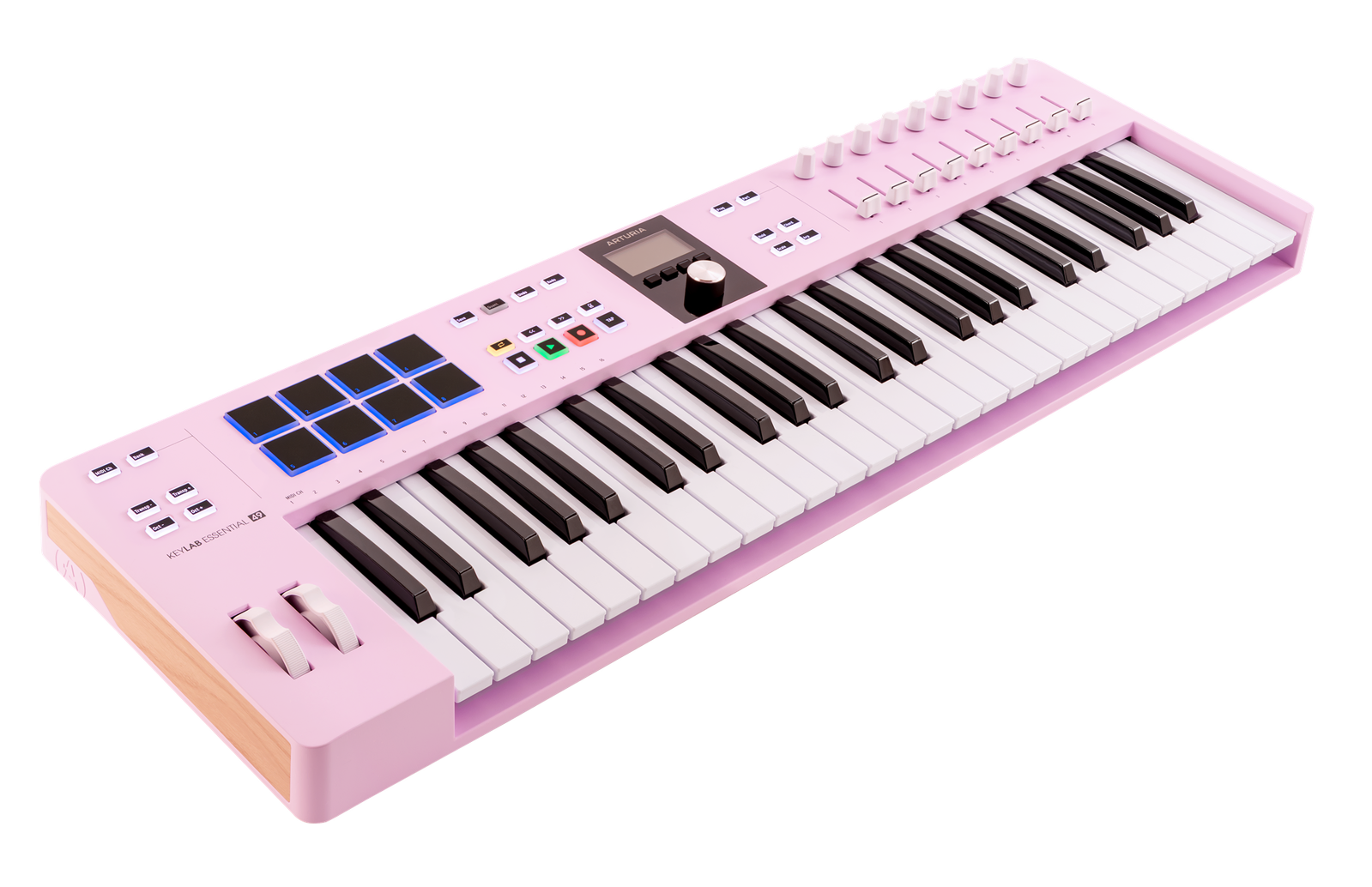 Looking for something really cool? Then look no further than the Limited Edition Arturia Keylab Essentials in two new sleek colours (Rose Quartz and Aquamarine). The Arturia Keylab Essentials MK3 49-Key represents a state-of-the-art MIDI controller and software package that put music production and sound design at you fingertips with just a few clicks. Featuring velocity-sensitive keys with aftertouch, a clickable encoder, 9 sliders, 8 touch and pressure sensitive pads, transport control switches and command switches, a modulation wheel, and a pitch-bend wheel, the Arturia Keylab Essentials MK3 is designed to creat music and respond to your DAW in a fast, effecient and most importantly, easy set up, with no previous music production experience needed. Ideal midi/USB controller to get musicians, producers, sound designers, gaming and video production users working immediately on their craft and not the technical clunks. A massive software bundle included with Arturia Keylab allows access to the latest of sounds from (Analog Lab V, Ableton Live Lite, Native Instruments Komplete 15 Select, UVI Model D, Loopcloud & Melodics) software. A must have midi controller for your studio or stage with everything you need. Oxygen Music is proud to stock a range of MIDI controllers including the Arturia Keylab Essentials MK3 49 Key Limited Edition Controllers. Available in Rose Quartz and Aquamarine.