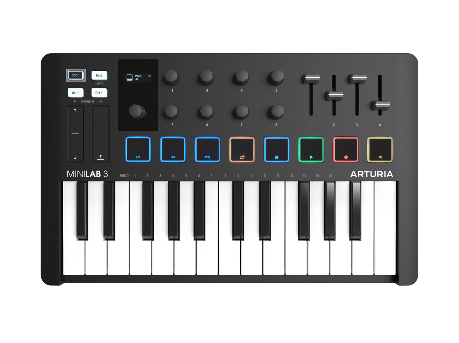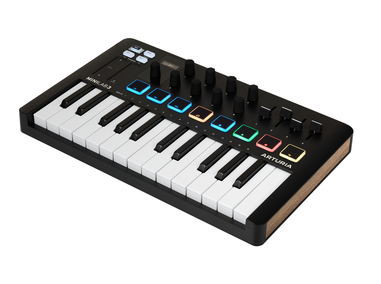 The Arturia Minilab MK3 makes music accessible to everyone with just a few clicks and brings together the hands on experience of digital music production and portability for today's music producer with no experience or music background needed. Control all your beats, rhythms, melodies, loops and mixes on your DAW from this one midi/USB keyboard controller. With the included software and 1000s of sounds included this product from ANALOG LAB INTRO, Ableton Live Lite, The Gentleman (Piano), MODEL D, Loopcloud and MELODICS, the Arturia MINILAB MK3 offers a diverse library from the classic analogue synth sounds to today's digital sounds. Easy to use with limitless possibility this product is perfect for both Keyboardists, Electric sound producers, DJ, Drummers, Video Producers and more, and perfectly suited for the studio or stage. OXYGEN MUSIC is proud to stock a range of Arturia products, including the MiniLab MK3 25 Key USB Controller in Black. Also Available in White, Black, Aquamarine, Rose Quartz.