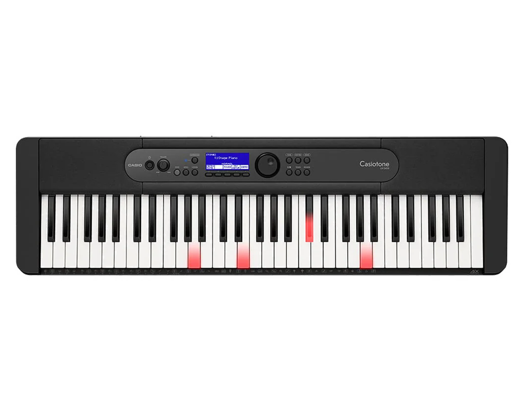 The Casio LK-S450 Casiotone Lightup Keyboard has been created to inspire and encourage the nexty generation of players. Designed specifically to be an inspiring instrument to learn on and motivate young students. With the main feature of Key Lighting System, the LK-S450 makes it easy to learn, follow and even teach yourself using the key sequence and connection to the Casio Music Space App. Featuring 3 setting touch-sensitive, 61-note keyboard, 600 tones, 200 Rhythms, 160 Built in Songs with Lesson Part select feature, split and layer keyboard function, General MIDI via the USB (Type-A), Midi Record and Playback, Connection to App, Built in Reverb and Chorus effects, intergrated Metronome, Headphone/Line Out jack, redesigned modern piano-shaped keys, longer battery life, smooth corners and a slim profile make this the perfect introduction to music. The new LCD screen and jog wheel mean less buttons and a clear, uncluttered panel making it easy to operate for beginners. The LK-S450 uses the most modern sound library for never-ending ispiration and creativity in any style or genre. This Casio keyboard is the perfect instrument for all students, classrooms and teachers. Includes music rest and power adaptor, or use anywhare using 6 x AA batteries. Oxygen Music stocks the most popular Casio keyboards including the latest portable CASIO LK-S450 Casiotone Lightup Keyboard - Black finish.