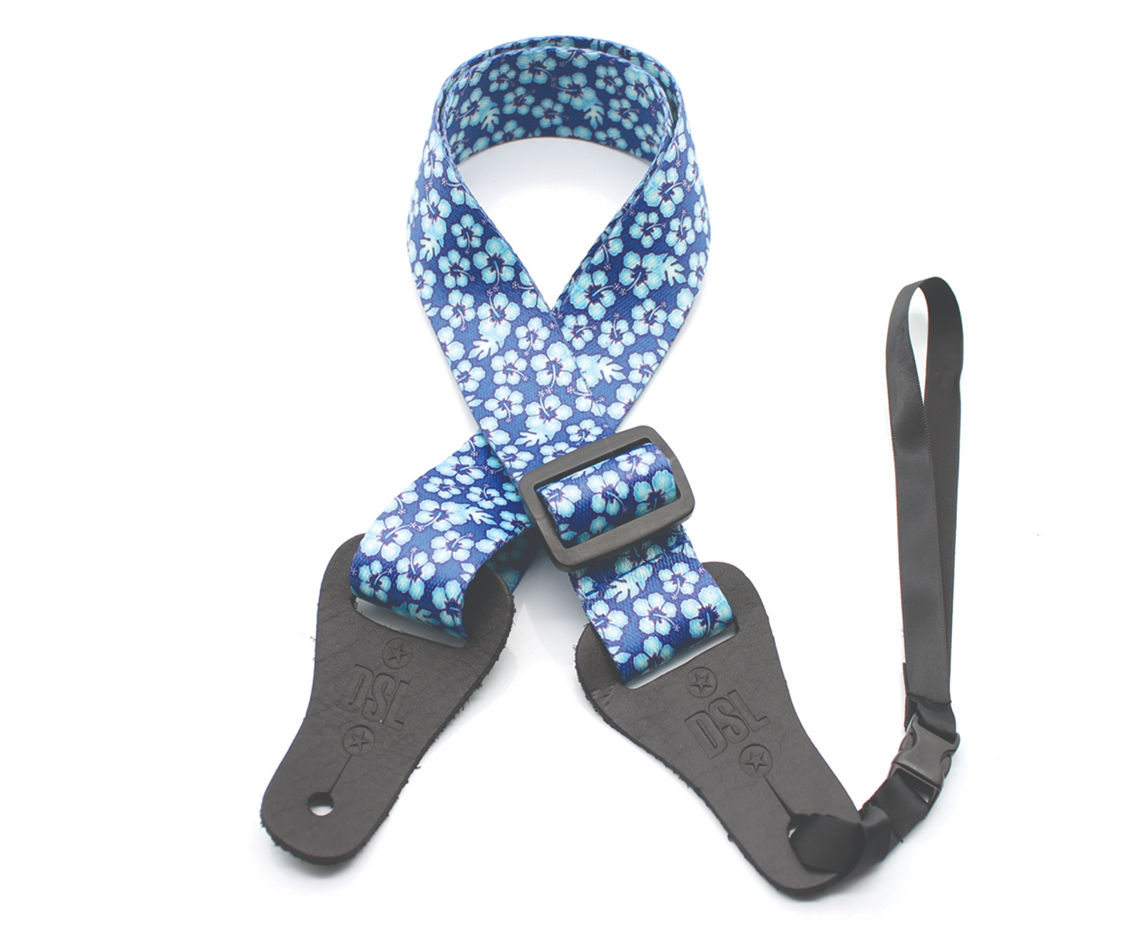 The DSL 38UKPOLY series of straps have been specially designed to fit the needs of ukulele players. Including a quick-release headstock buckle design for convenient and fast attachment and removal. Featuring a 1 1/2 inches wide (38mm) comfortable, smooth polyester webbing construction, medium weight leather ends and convenient tri-slide length adjuster. Scratch resistance colourful digital print. Available in a wide variety of colours. Oxygen Music is proud to stock the wide range of DSL Ukulele straps, proudly made in Australia. 38UKPOLY-HIB-BLUE