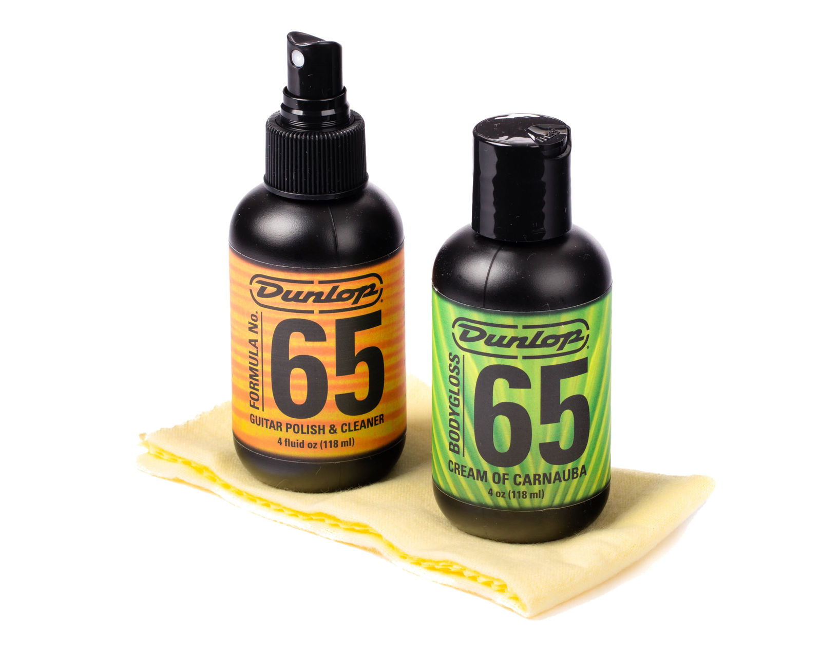 If you love your prized guitar, then keep your cherished instrument looking sharp and feeling as important as it is! This all-in-one Dunlop Formula 65 Guitar Care Kit is the ultimate solution to clean and protect your guitar. Includes the famous Dunlop Formula 65 polish and cleaner to help remove dirt and grease build up and protect the clear coat finish and the Bodygloss 65 Cleaner and Prep solution made from the highest grade Carnauba wax to polish and protect your surface finish and seals over subtle scratches. Helps restore any finish to its original beauty. Leaves a micro-thin, stain-resistant protective layer and won't build up. Perfect for daily use. Oxygen Music stock a great range of guitar maintenence products including the Dunlop Formula 65 Guitar Polish Kit.