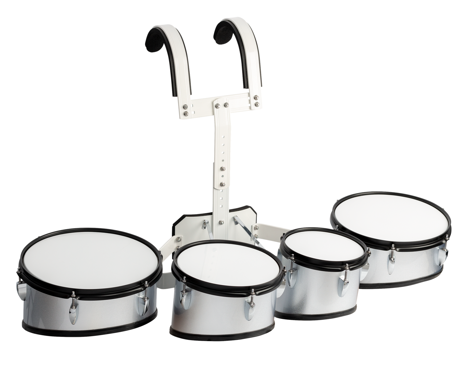 DXP Drums and Percussion are a tried and trusted brand in school, educational and band percussion. This DXP Marching Tenor drum Quad Set DA8624 features a full set of tenor drums including 8x8", 10x8", 12x8" and 13x8" projection drums, height adjustable carry harness with padded shoulder supports, abdomen support. The DXP Marching Tenor drum set is the perfect size for most junior and secondary students to carry and play, not too heavy or bulky and delivers a wide tuning range from high to low. Great for playing drum melodies. Oxygen Music proudly stock a great selection of school, educational and band percussion equipment to suit all levels and budgets, such as this DXP Marching Tenor Drum Quad Set. DA8624. Sticks and Drum Key included. Metallic Silver Finish.