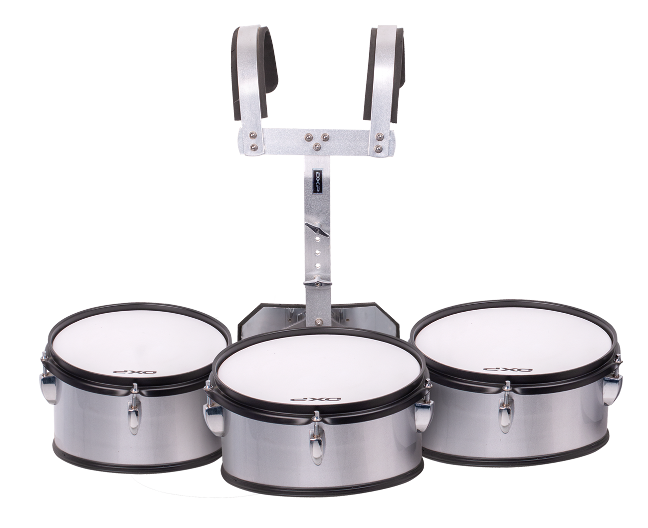 DXP Drums and Percussion are a tried and trusted brand in school, educational and band percussion. This DXP Marching Tenor drum Triple Set DA8623 features a larger 3 set of tenor drums including 10x8", 12x8", 13x8" projection drums, height adjustable carry harness with padded shoulder supports and abdomen support. The DXP Marching Tenor drum set is the perfect size for most junior and secondary students to carry and play, not too heavy or bulky and delivers a wide tuning range from high to low. Great for playing drum melodies and works well with a set of DA8625 small tenor drum set. Oxygen Music proudly stock a great selection of school, educational and band percussion equipment to suit all levels and budgets, such as this DXP Marching Tenor Drum Triple Set. DA8623. Sticks and Drum Key included. Metallic Silver Finish.