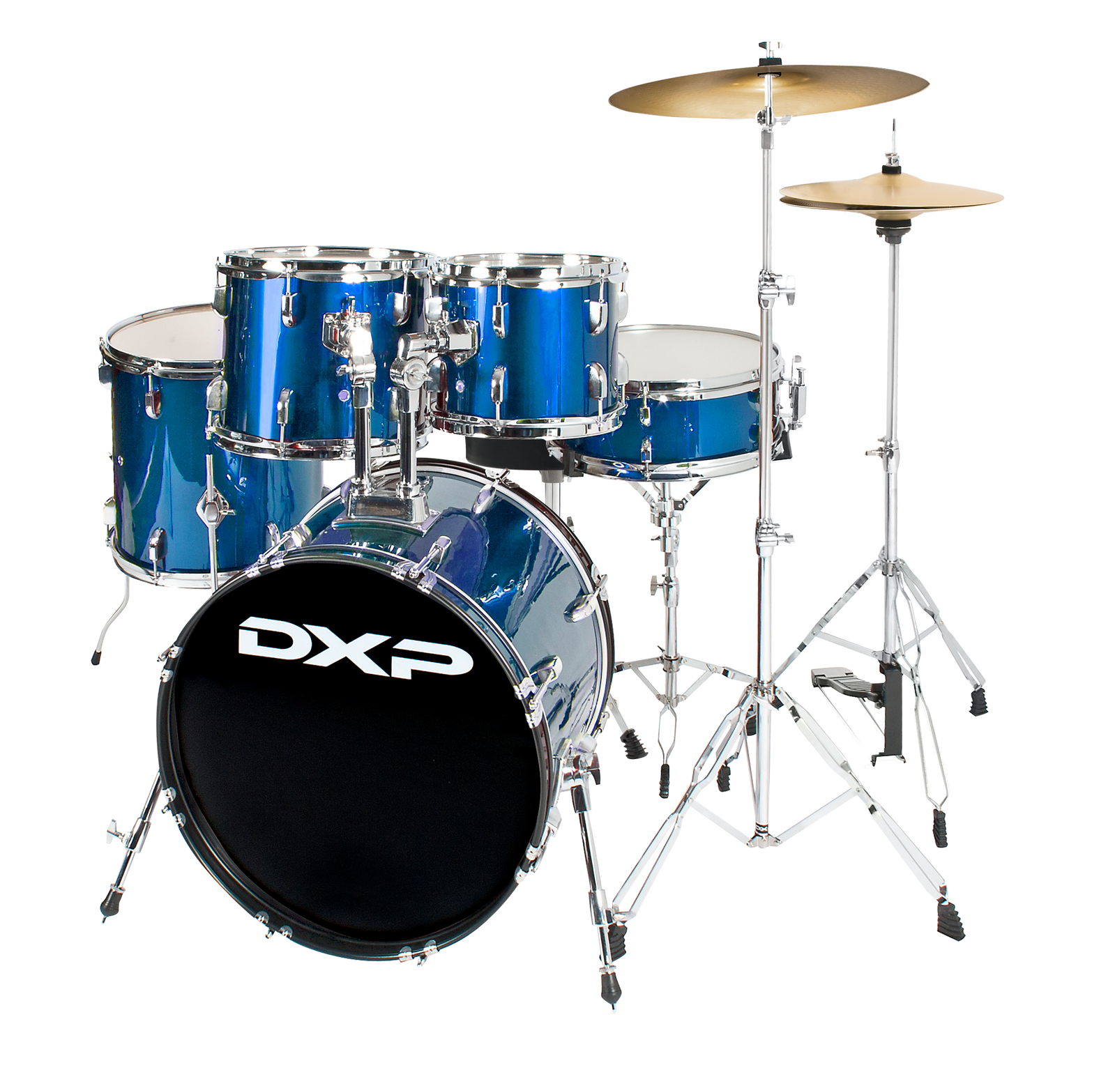 This DXP 5 Piece Fusion entry level drum kit is the perfect start for students on the journey of playing the drums. Designed to be a complete starting practice kit, this drum kit has all you need to get started. Drum teacher's highly recommend it! The DXP 5 piece Fusion size drum kit has been developed with students in mind and comes complete with a set of practice Cymbals (light weight and quiet for the practice room), Stool and Sticks. It features 7ply wood shells, fusion size 10", 12", 14", 20" and 14" snare fusion size drum shells, upgraded medium hardware, standard size fittings and components common to most major brands and retractable bass spurs and great choice of colours. All beginner kits collected from OXYGEN MUSIC are professionally assembled, tuned and checked. All you need to do is take it home and start playing! Oxygen Music proudly stock a wide selection of entry level and beginner student drum kits, like this very popular DXP 5 Piece Fusion drum kit TX06P. Finished in Metallic Blue.