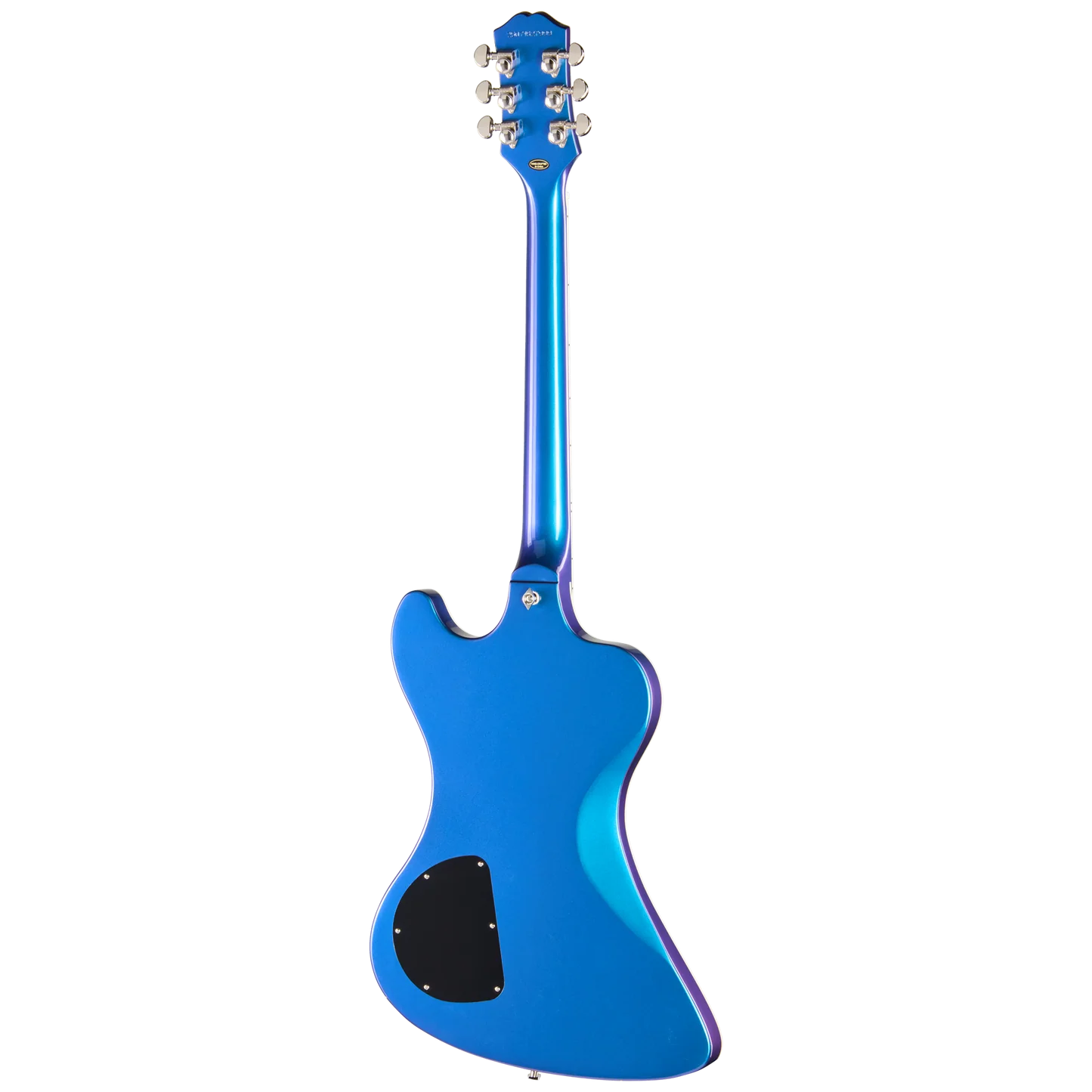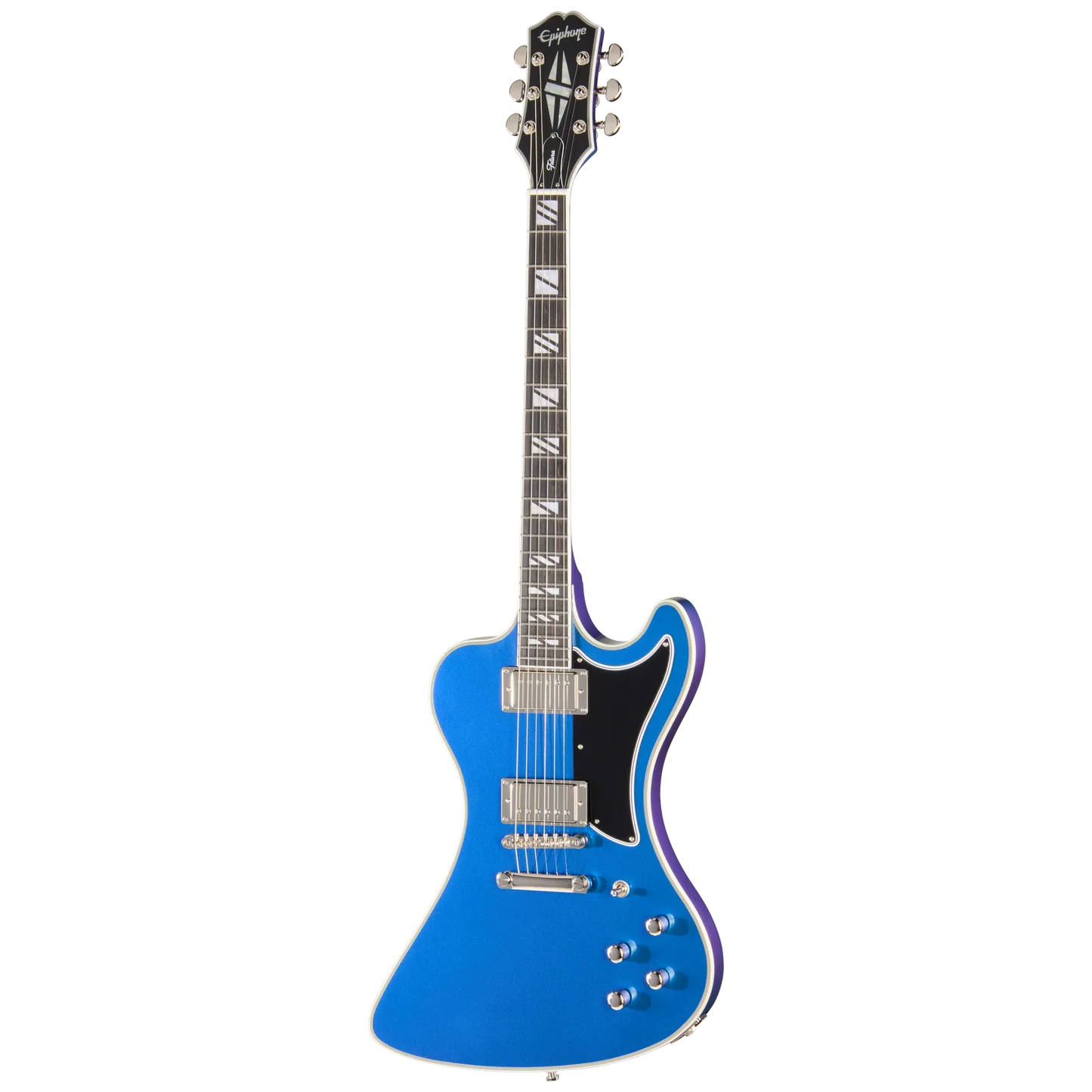 This particular Futura model is the futuristic RD shape, starting as a mashup of the Explorer and the Firebird it was well ahead of its time when it first released in 1977 and it quickly became a fan favourite thanks to its out-there style and its 25.5" scale length. Epiphone have now brought it back, this time with a Twilight Shift finish courtesy of 2077.
