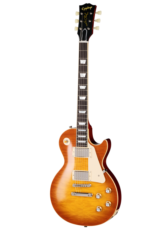 The EPIPHONE Reissue 1960 Les Paul Iced Tea Burst proudly brings back the nostalgic tradition and vintage tradition of the exciting early 60's for Les Paul guitars. This reissue Epiphone Les Paul is directly inspired by Gibson Custom and pays homage to the thinner and faster-playing SlimTaper™ neck profile from those of the 50's. Featuring a genuine mahogany body with a carved, plain maple cap topped with a beautiful AAA flamed maple veneer, one-piece mahogany neck with fast-playing SlimTaper™ profile, rosewood fretboard with mother-of-pearl trapezoid inlays and 22 frets, authentic style Gibson Custombucker neck and bridge pickups delivering the perfect vintage Les Paul sound, Switchcraft® pickup selector toggle switch, 2 Volume, 2 Tone; CTS Potentiometers, Black Beauty paper-in-oil capacitors, ABR-1 Tune-O-Matic Bridge, historic aluminum Tailpiece and Epiphone Deluxe, Double Ring Keystone Button tuners. Finished off in a classic Iced Tea Burst. The EPIPHONE Reissue 1960 Les paul not only has the classic look, it also has the specs to sound the part. This is a must have for all true Les Paul fans. Oxygen Music proudly stocks a great range of Epiphone Guitars including the Epiphone Reissue Les Paul 1960 Iced Tea Burst Electric Guitar. Includes case.