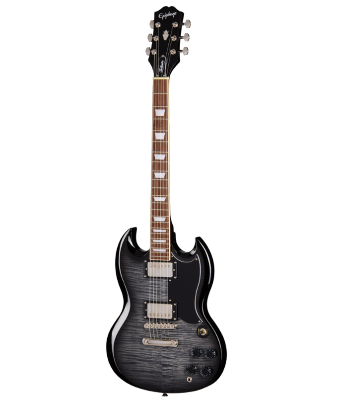 The Epiphone SG Tribute Plus raises the bar for the popular Tribute series, offering upgraded looks, quality craftsmanship, and incredible performance at a player-friendly price. Designed for beginners and advancing guitarists who want a reliable instrument that won’t limit their progress, the SG Tribute Plus features a mahogany body with a Gibson inspired SG shaped top and a stunning AAA flame maple veneer for classic SG style. The bolt-on mahogany neck has a comfortable ’60s SlimTaper Rounded C profile for smooth, fast playability, enhanced by a sculpted heel for easier access to upper frets. A bound laurel fingerboard with 22 medium jumbo frets and pearloid trapezoid inlays adds to its authentic, vintage appeal, while the ’60s Kalamazoo-style headstock and quality die-cast tuners ensure stability. The Epiphone LockTone Tune-O-Matic bridge and LockTone Stop Bar tailpiece provide secure tuning, easy adjustments, and excellent sustain. Powered by a pair of Epiphone humbuckers—a 650R in the neck and a 700T in the bridge—this model delivers strong, full-bodied tone thanks to their ceramic magnets, with nickel covers hiding eye-catching zebra coils. Affordable, stylish, and ready to perform, the Epiphone SG Tribute Plus is the perfect first electric guitar or a strong upgrade for developing players. Oxygen Music proudly stocks a wide range of Epiphone Electric guitars including the SG Tribute Plus Electric guitar.
