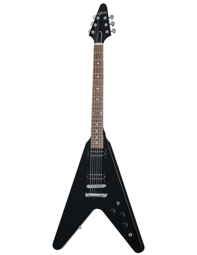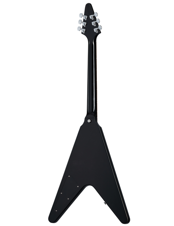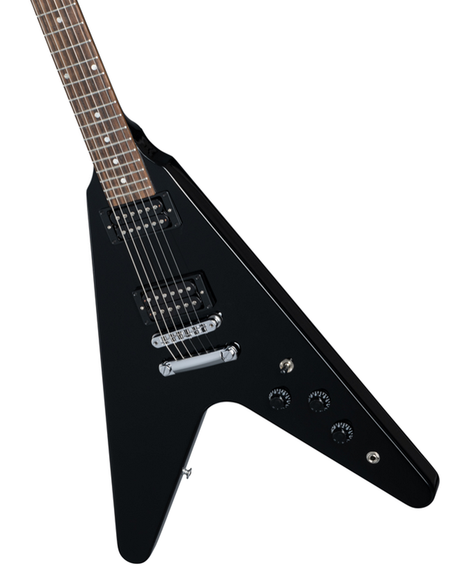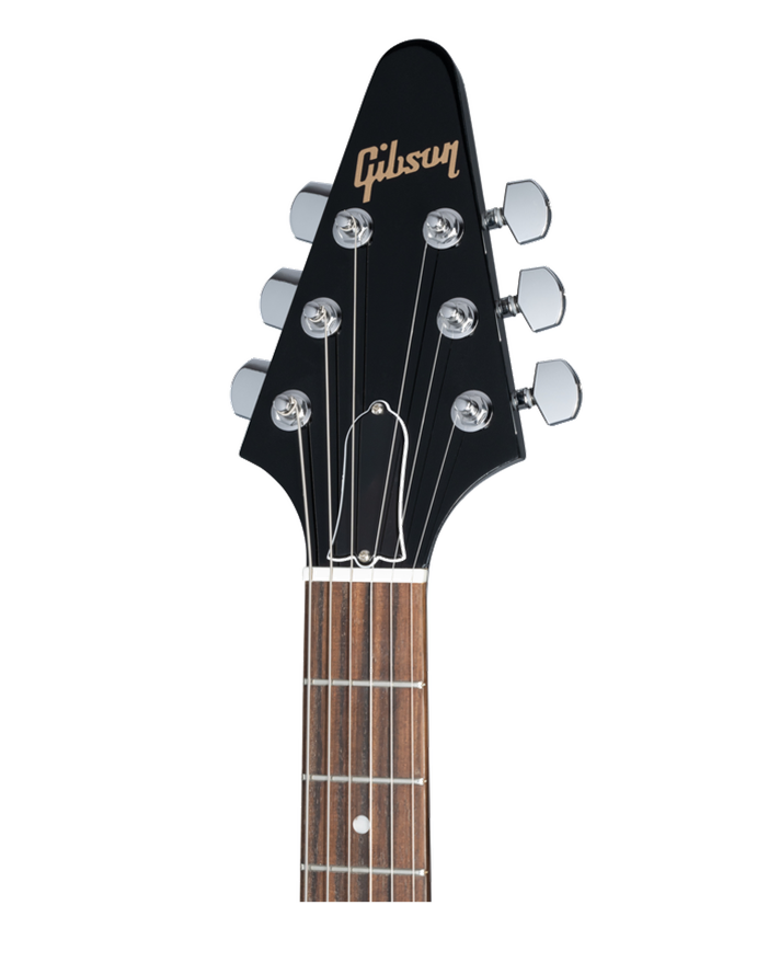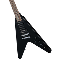 The Gibson Flying V is regarded as one of the most iconic designed guitars in rock history with it's unique look making it the go to guitar for hard rock and metal players. This Gibson 80's Flying V is a tribute to the highly popular and famous Flying V of 1984. Featuring a Mahogany body, slim taper Mahogany neck, Indian rosewood fretboard feel great in the hand and the classic Ebony flying V shape with matching headstock ooze retro 80's metal. A pair of 80's tribute neck and bridge pickups mounted in an all mahogany body nail all the classic tones from one of the greatest decades for rock and roll, but also sound right at home in metal and punk genres, whilst the Aluminium Nashville Tune-O-Matic Bridge, Aluminium Stop Bar Tail Piece, Grover Rotomatic with Contemporary Button Tuners and 2 Volume, Master Tone controls finish off this monster guitar. Oxygen Music proudly stocks a massive range of Gibson electric guitars including the ever popular Gibson 80s Flying V Ebony guitar.