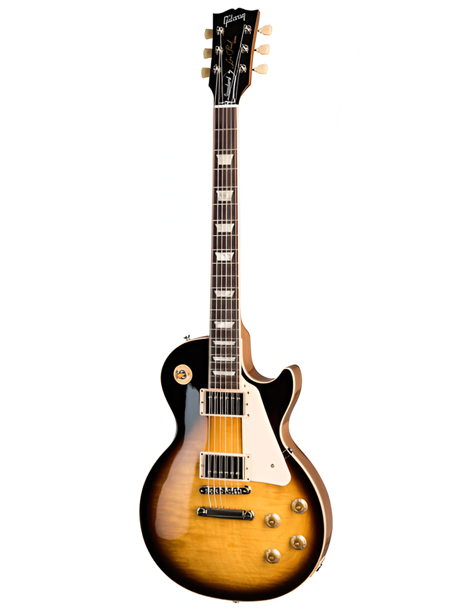 The new Gibson 50s Les Paul Standard brings back the timeless design of the Golden Era of Gibson's innovation. With a solid mahogany body under a maple cap and a rosewood fretboard on a rounded 50's neck, Gibson really have captured the magic that made the Les Paul a must have for pioneering rock and rollers. A pair of Burstbuckers capture the glittering warmth generated from the solid body and provide a serious roar when ramped up. To match these vintage tones, the Standard 50s comes equipped with classic-style Tune-O-Matic bridge, aluminum stop bar tailpiece, vintage deluxe tuners with keystone buttons, and aged gold tophat knobs. With your choice of 3 faithful retro finishes, it's hard not to love this old school rocker. Oxygen Music is very proud to stock a wide range of Gibson electric and acoustic guitars including the Standard 50s Tobacco Sunburst Electric Guitar.