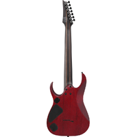 The Ibanez RGD721FA 7 string Electric Guitar features a fast Wizard II-7 five-piece Panga Panga/Walnut neck paired with a Macassar ebony fretboard, delivering tight lows, focused mids, and a strong high-end attack with quick response and rich sustain. Jumbo frets enhance smooth, effortless playability, especially for articulate single-note runs. A stunning flamed maple top sits atop a layered ash and okoume body, combining eye-catching aesthetics with bright tonal character and excellent sustain. DiMarzio Fusion Edge pickups provide a powerful, modern voice with crisp highs, a tight low end, and clear definition free of muddy mids. Hardware includes Gotoh MG-T locking machine heads for exceptional tuning stability and fast string changes, along with a Gibraltar Standard III bridge designed for comfort and optimal string vibration transfer. A coil-tap switch expands tonal versatility, while luminescent side dots ensure clear fretboard visibility on dark stages. Oxygen Music stocks a great range of Electric Guitars including the RGD721FA 7 string Red Wine Flat Burst Flat.