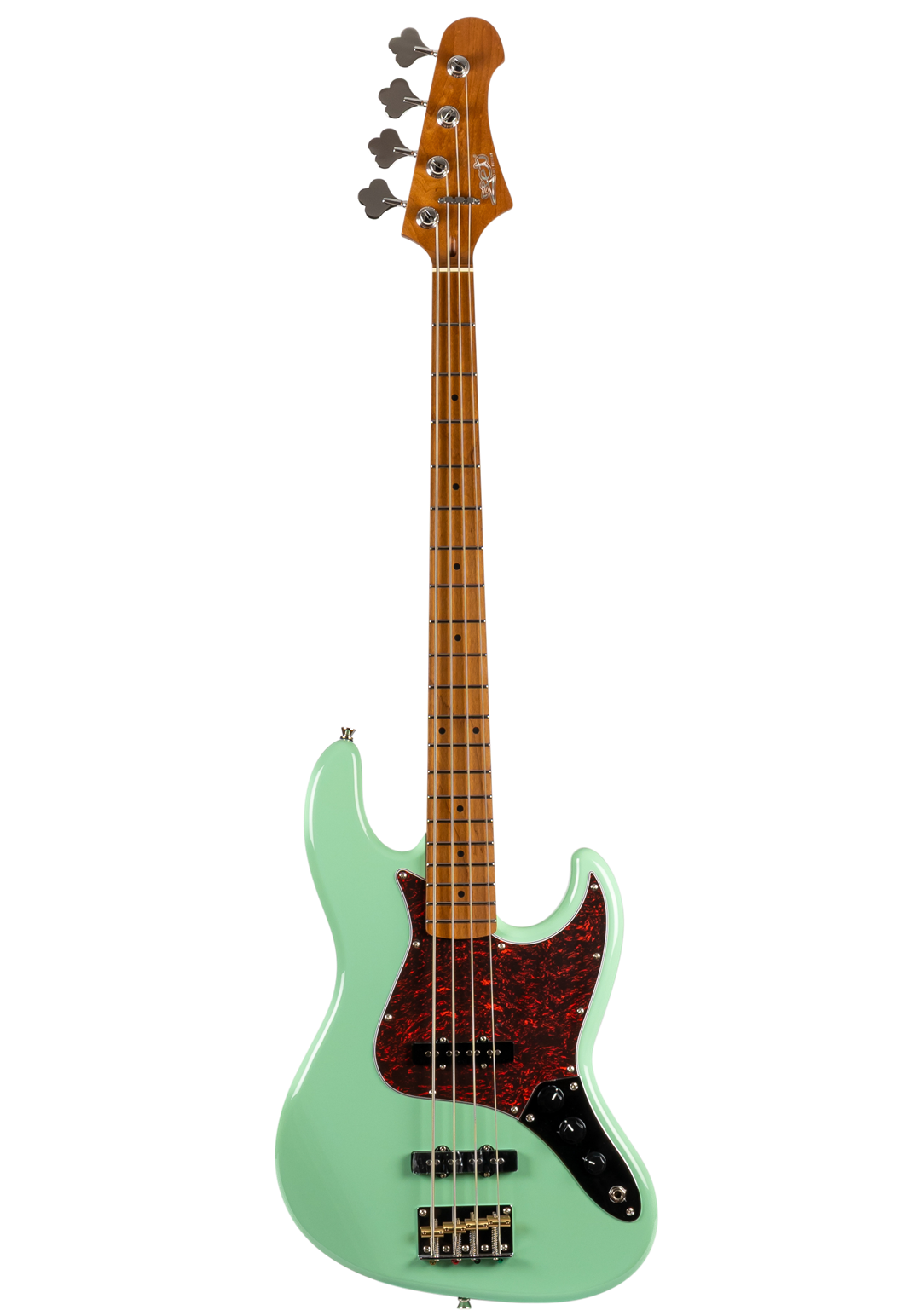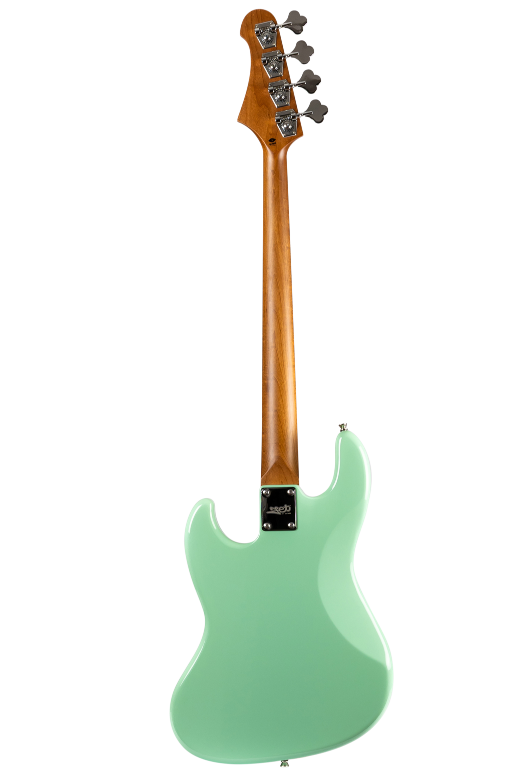 The JET JJB-300 Electric Bass Guitar offers all players a solid and well constructed bass guitar ready for any performance style at a very affordable price. Featuring a Roasted Poplar body, Canadian Roasted Maple neck with modern C-Shaope, Rosewood fretboard, 34" scale - 20 Frets, 2 JB style pickups, Double action truss rod, Bone nut, 2 volume/1 tone control and finished with D'Addario Strings, the Jet JJB-300 basses pack alot of value, tone and performance within a great price point. Oxygen Music is proud to stock a wide range of Jet Guitar and Bass instruments including the JJB-300 basses. Finished in Sea Foam Green.
