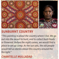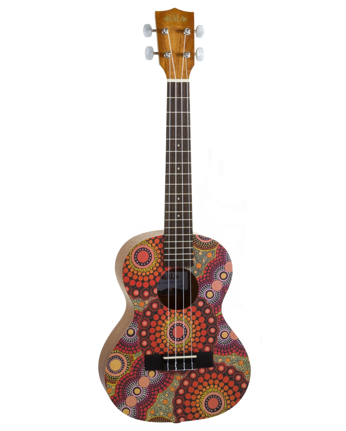 The Kala 'Desert Storylines' ukuleles have been designed in collaboration with Indeginous Australian artists that tell the stories of the Australian Desert and Bush. The 'Sunburnt Country' is designed by artist Chantelle Mulladad and tells the story of community gatherings, camping and collecting bush food in the Sunburnt desert lands. Featuring all Mahogany body, back and sides, Mahogany neck, giving it a rich warm and lush tone, along with a Rosewood fingerboard and Aquila Super Nylgut strings, this ukulele is comfortable and easy to play, and will hold tune for longer with the GraphTech NuBone nut and saddle. Finished in a beautiful Desert Storylines 'Sunburnt Country' original design. Includes Desert Storylines Logo Collection gig bag. Oxygen Music are proud to stock a wide range of Kala products, including the KALA Desert Storylines Series Mahogany Tenor Ukulele.