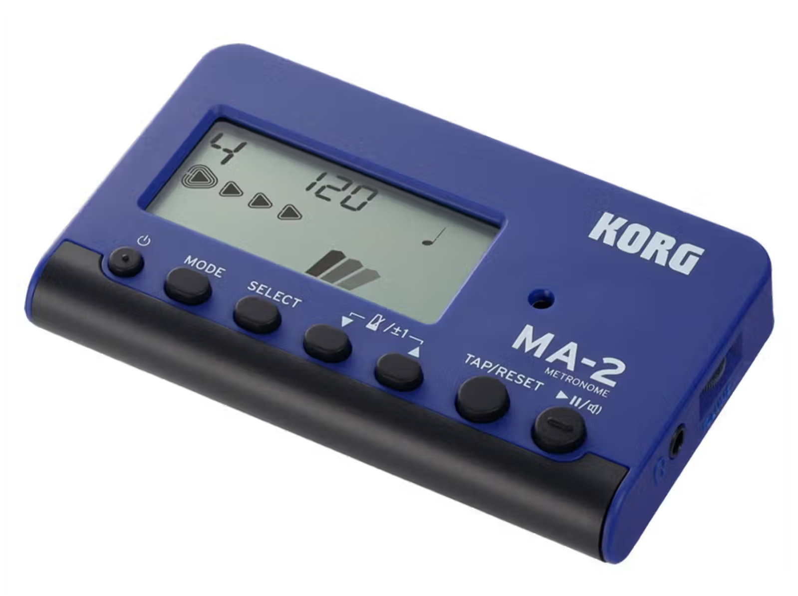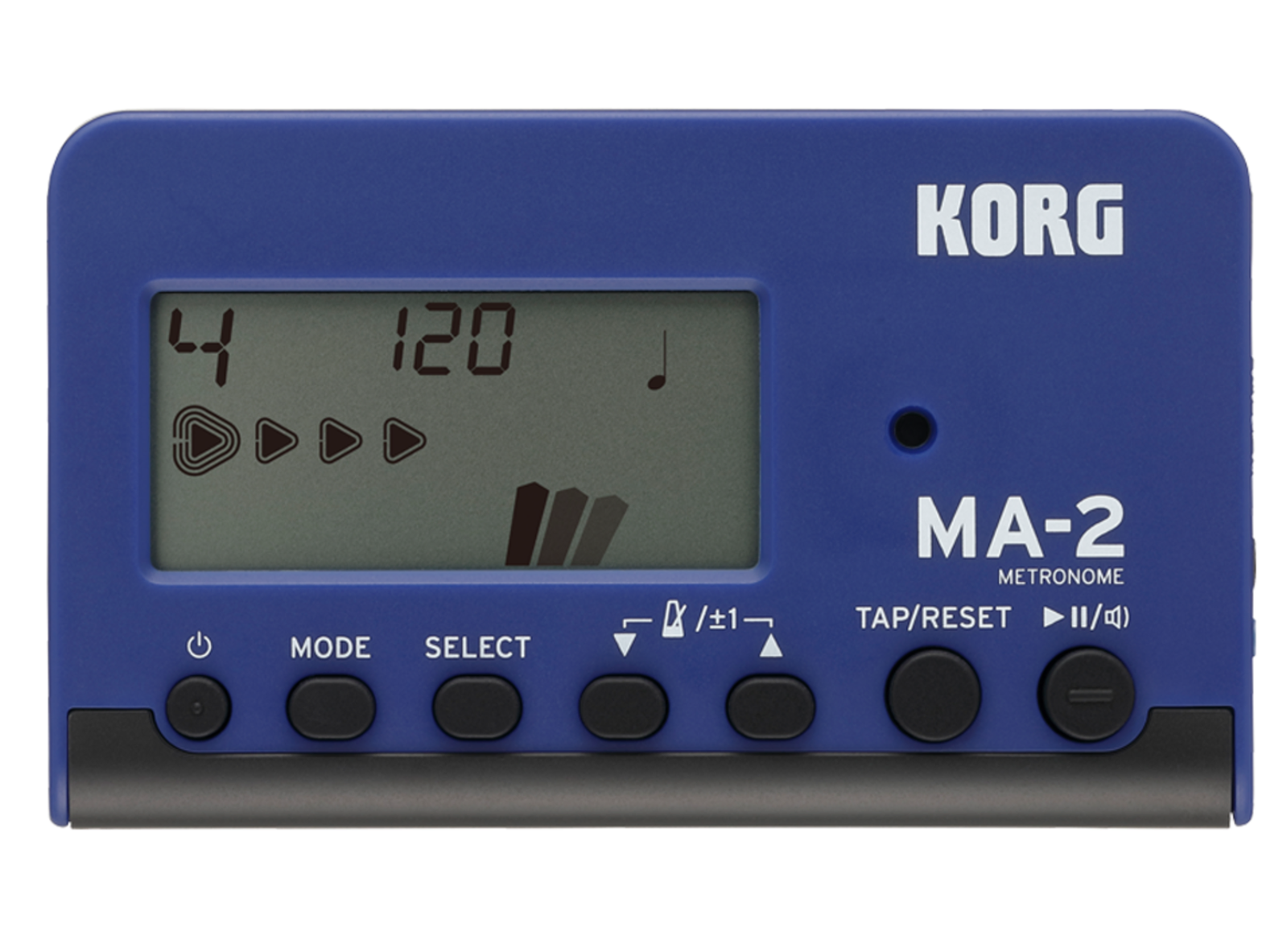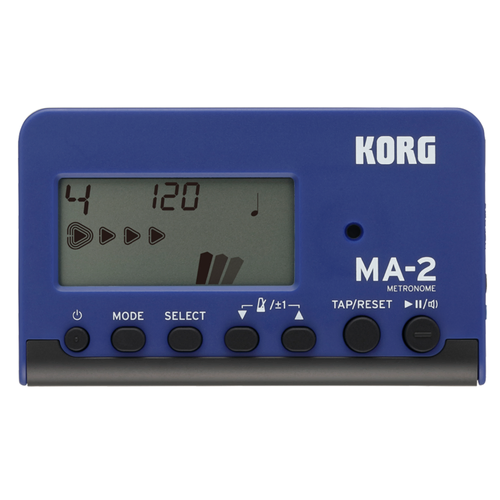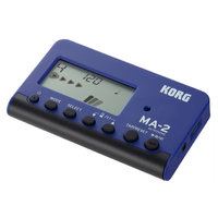 Oxygen Music is proud to stock many Korg products and accessories, including the Korg MA-2 electronic metronomes. The MA-2 is a compact metronome that solidly covers all the basics with a broad tempo range and a rich variety of beats and rhythm patterns, and Timer Mode/Sound Out Mode for a variety of practice options. The MA-2 also shows the beat in an innovative way that makes practicing easier. With stylish design and reliable functionality, this is an indispensible rhythm training aide for any musician and teacher. Up to 400 hours use. MA-2BL Blue.