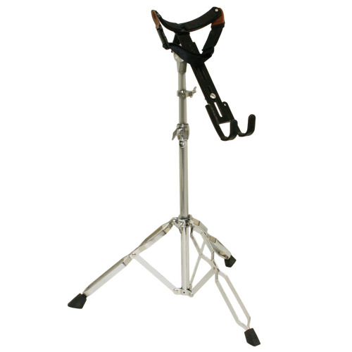 The MANO PERCUSSION Djembe Stand is a heavy duty stand designed to securely and safely hold your djembe in a standing position with angle adjustment for ease and comfort of playing. Featuring a shaped cradle, rubber shell protector and elastic body straps with clip and memory lock, the Mano Percussion Djembe stand will suit different sized djembes and has a height adjustment from 72cm to 105cm. Perfect for the multi-instrument percussionist or performer needing hands free playing ability. Oxygen Music proudly stock a wide selection of Percussion Instruments, hardware and accessories like this Mano Percussion Djembe Stand TDK416.