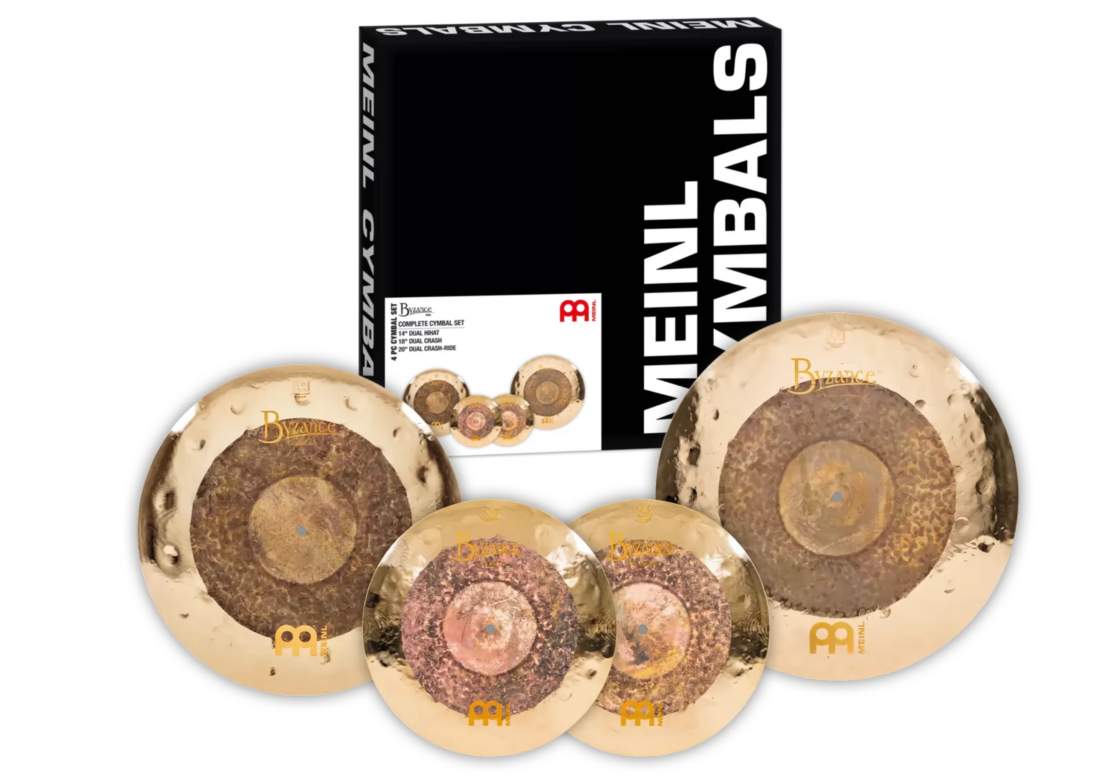 Meinl Byzance cymbals are completely hand hammered into shape and satisfy the highest demands of drumming. Every Byzance cymbal is a piece of art and has its own unique sound characteristics which can never be duplicated, thus making Meinl Byzance B20 Bronze cymbal range the ideal choice for musicians wanting to stand out. This Meinl Byzance Dual Complete Cymbal Pack features a selection of the most popular Byzance Dual cymbals including 14 Inch Dual Hi Hats, 18 Inch Dual Crash and 20 Inch Dual Crash-Ride, all delivering dark, warm and slightly trashy tones. OXYGEN Music have a great range of all the latest Meinl cymbals ready for you to try out, such as this Meinl Byzance Dual Complete Cymbal Pack BDU-CS1