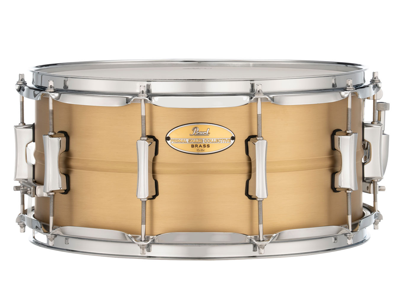 If you're ready to unleash your drumming to the next level, the Pearl Primal Collective Snare drum series is a must! By far, one of the most affordable and wide ranging choices, the Primal Collective series you a selection of incredible sounding snare drums using Brass, Copper, Aluminum and Steel. This Primal Collective snare drum features a 1mm Beaded Brass shell, 2.3mm Triple-Flanged hoops, sleek PSCL55 Dual Lugs and SR01 snares and strainer. The Brass shell provides a very controlled, mid-range and energetic tone. Perfect snare drum for featuring in your music without too much aggression, yet still having enough depth and brightness to cut through. Oxygen Music is proud to stock a wide range of Pearl products, including the Primal Collective 14x6.5 Inch Snare Drum in Brushed Brass finish. PSC1465B