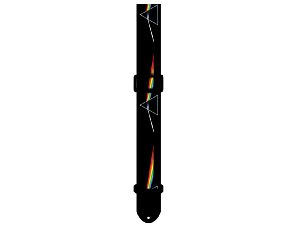 This 2" wide licensed polyester guitar strap is made with the "Dark Side Of The Moon" high resolution design heat transferred onto polyester webbing. It has leather ends and is adjustable in length from 39" to 58". Oxygen Music is proud to stock a large range of Perris Guitar accessories, Straps and Picks, including the PS1070 2" Polyester "Dark Side Of The Moon" Pink Floyd Licensed guitar strap.