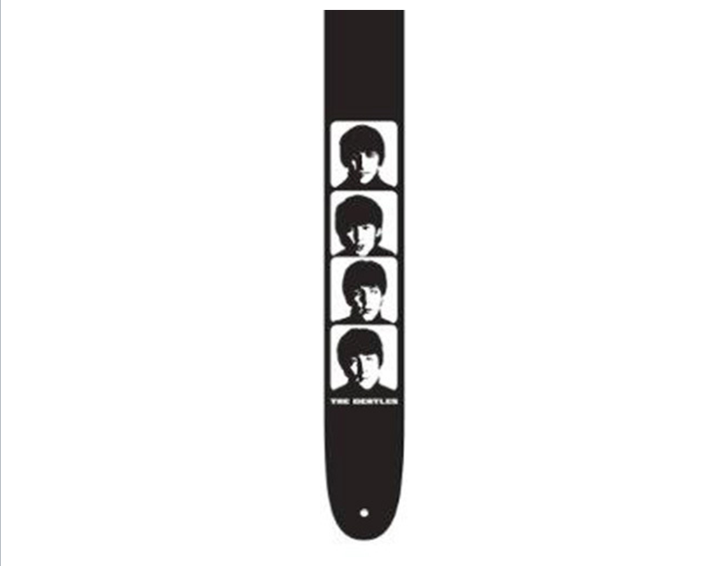 This is a 2.5" wide licensed Beatles guitar strap in black with "Band Member Photos". This strap is made from vegan friendly vinyl and has High Resolution Imaging which makes the images crystal clear. This strap is adjustable from 44.5" to 53" in length.