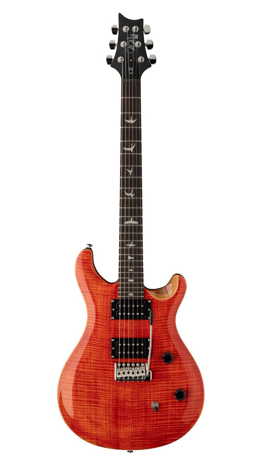 The new PRS SE CE24 is a unique spin on the traditional formula. The "S" pickups give you excelent clarity and ballance, and with the addition of a push/pull coil split, this is quite a versatile machine. The vibrant orange finish over the stunning flamed maple top makes the guitar really pop! This guitar has all the classic PRS features you love to see, including the iconic bird inlays, the PRS patented tremelo, PRS designed tuners and the 25" scale length. This guitar is a worthy addition to anyones collection! Oxygen Music are proud to stock a range of PRS electric guitars including teh PRS SE CE24. Finished in Blood Orange.