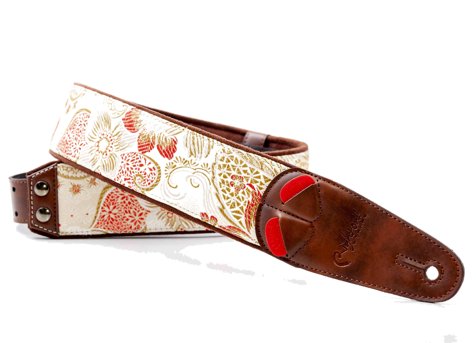RIGHT ON Guitar Straps are a uniquely designed and handmade range of guitar straps with a commitment to sustainable and environmentally friendly Vegan manufacturing process, using up to 99% recycable materials and 100% animal free product. Made in Spain, the Right On Guitar Strap range is one of the most comfortable strap you'll find on the market. From wide, thick padded straps to suit heavy basses and electric guitars, to classic style straps for acoustic guitars and narrow straps better suited to folk instruments such as Ukuleles, you'll find a beautifully crafted design and style to suit. This Right On Mojo Hokkaido Beige guitar strap is inspired by the Japanese northernmost island, Hokkaido and it's natural elegance and artisanal traditions, featuring minimalist sophistication wabi-sabi aesthetic, non-slip technical microfiber inner material, providing excellent grip on the shoulder, adjustable from 95cm to 150cm and 5mm thick high density latex padding for amazing comfort. Pick holder pockets included. Oxygen Music are proud to stock a wide range of Right On Guitar Straps like this unique Mojo Hokkaido Beige Guitar Strap.