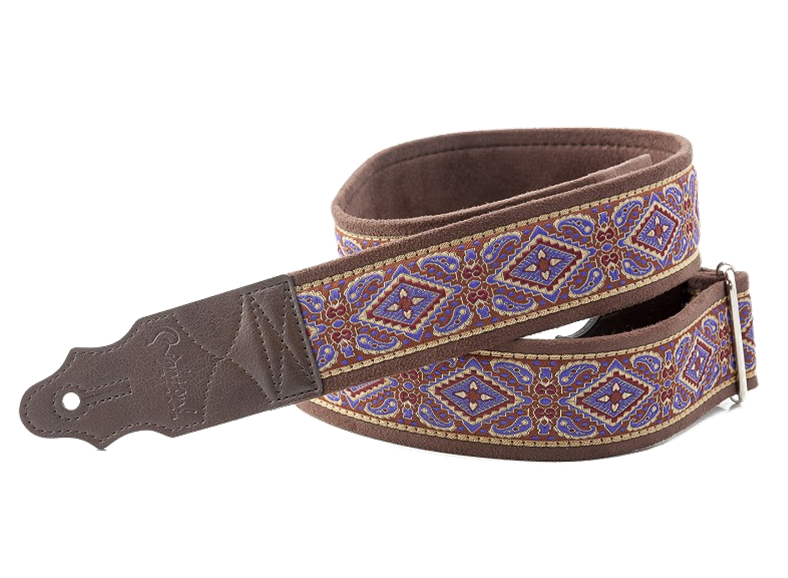 RIGHT ON Guitar Straps are a uniquely designed and handmade range of guitar straps with a commitment to sustainable and environmentally friendly Vegan manufacturing process, using up to 99% recycable materials and 100% animal free product. Made in Spain, the Right On Guitar Strap range is one of the most comfortable strap you'll find on the market. From wide, thick padded straps to suit heavy basses and electric guitars, to classic style straps for acoustic guitars and narrow straps better suited to folk instruments such as Ukuleles, you'll find a beautifully crafted design and style to suit. This Right On Standard Plus Monterey guitar strap is inspired by the iconic Monterey Music Festival and features a vintage 60's Jacquard weaving design, non-slip technical microfiber inner material, providing excellent grip on the shoulder.adjustable from 90cm to 150cm and 2 Inch (5cm) wide, 2.5mm thick high density latex padding for amazing comfort. Pick holder pockets included. Oxygen Music are proud to stock a wide range of Right On Guitar Straps like this unique Standard Plus Monterey Purple Guitar Strap.