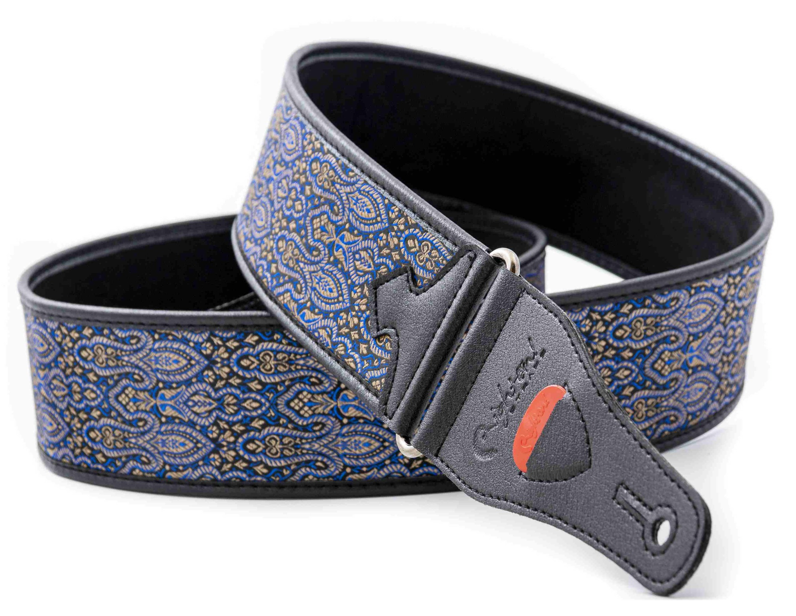 RIGHT ON Guitar Straps are a uniquely designed and handmade range of guitar straps with a commitment to sustainable and environmentally friendly Vegan manufacturing process, using up to 99% recycable materials and 100% animal free product. Made in Spain, the Right On Guitar Strap range is one of the most comfortable strap you'll find on the market. From wide, thick padded straps to suit heavy basses and electric guitars, to classic style straps for acoustic guitars and narrow straps better suited to folk instruments such as Ukuleles, you'll find a beautifully crafted design and style to suit. This Right On Talisman Cordoba Blue guitar strap is inspired by the majesty of the Córdoba Mosque and the splendor of Mudejar art and evokes the unique blend of Andalusian tradition and architectural mysticism, reflecting the region’s artistic heritage. Adjustable from 95cm to 150cm and 2.38 Inch (6cm) wide heavy duty padding. Pick holder pockets included. Oxygen Music are proud to stock a wide range of Right On Guitar Straps like this unique Talisman Cordoba Blue Guitar Strap.