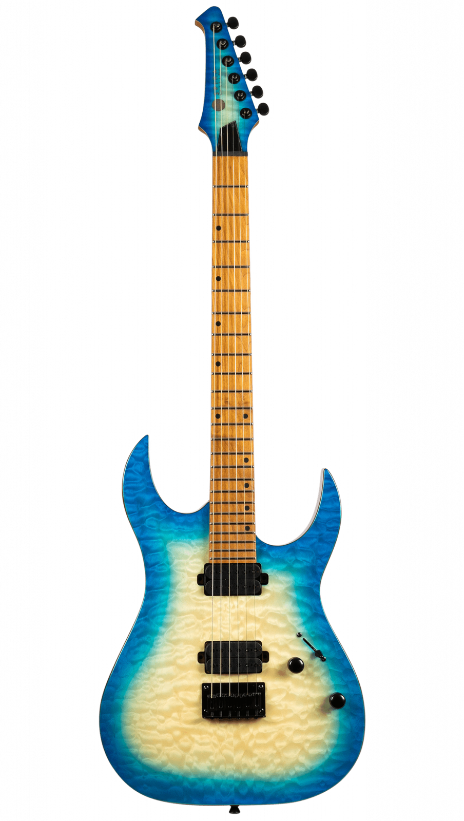 The S-500 sits at the top of Spira’s six-string lineup, built for players who want the perfect mix of performance and style. With its mahogany body and stunning quilted maple top, it’s as visually striking as it is resonant. The Canadian roasted maple neck and fretboard deliver rock-solid stability and a smooth, responsive feel that makes advanced techniques effortless. Loaded with a pair of Spira Villain humbuckers, the S-500 delivers powerful, articulate tones that shine across genres but truly excel in rock and metal. Add 24 jumbo frets, premium hardware, and exceptional tuning stability, and you’ve got a guitar that’s equally at home on stage or in the studio. Combining high-end craftsmanship with head-turning looks, the S-500 is the ultimate choice for serious players who want it all. Oxygen Music stocks a great range of Spira Guitars including the S-500QGY E Trans Aqua Burst Electric Guitar.