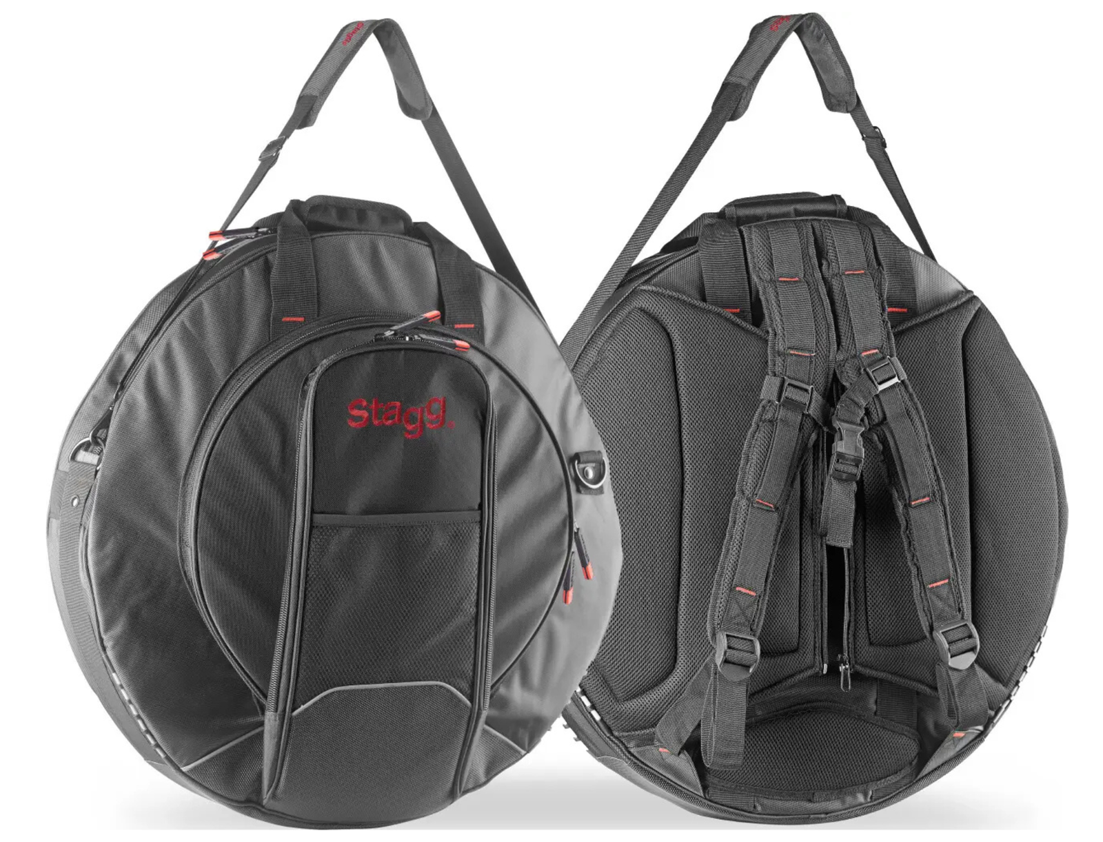 STAGG music instruments and accessories are well known for producing amazing quality products at exceptionally affordable prices. This STAGG SCYBB-22 Pro Cymbal Bag offers superior protection of your cymbals during travel and storage. Featuring a strong construction of reinforced nylon material with plush inner lining, 4-tier main compartments and 2-tier HiHat and Splash compartment, Extrenal pouches and stick pockets, heavy duty backpack straps, shoulder and comfort carry handes and heavy duty zips. The Stagg Pro Cymbal bag will safely hold up to 22 inch cymbals. Oxygen Music is excited to offer a wide selection of Stagg cymbals and accessories, including the Stagg SCYBB-22 Pro Cymbal Bag.
