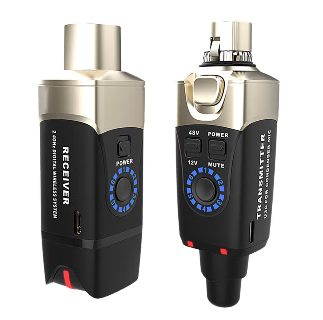 Designed to make dynamic microphones wireless, the XVIVE U3C Condensor Microphone Wireless System features high end sound quality for its small compact size. Its reliable wireless transmission is suitable for live music performance, recording sessions, theatrical productions, public speaking and any other events where wireless condensor microphones are needed and require phantom power. It is small and light enough to fit in your pocket and sets up in seconds. The U3C wireless system provides 12V or 48V phantom power to any connected condenser microphone, industry standard 24-bit / 48 kHz digital audio with low distortion and wide frequency response, stable 2.4 GHz wireless connection with up to 90 feet of transmitting, meaning you can send vocal transmission without worrying about how to run your cables. With a rechargeable battery to provide 5 hours of performance, simply plug it in, turn on the power, set the channel, and your microphone is wireless! Oxygen Music is proud to stock a wide range of XVIVE Pro Audio Equipment, including the XVIVE U3C Condenser Microphone Wireless System.