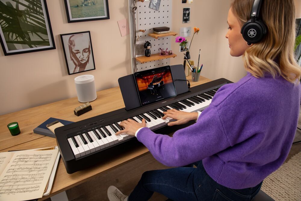 The Yamaha P-145BTB 88-key weighted action digital piano has a modern and contemporary design with a compact footprint that allows for easy portability, set up and storage. The P-145BT features a new graded hammer compact (GHC) keyboard which offers the same weighted feel of an acoustic style piano with a slightly heavier feel in the bass than the treble and a matte key finish for a natural feel. The piano also features a keyboard with a natural feel, with black keys that feature a matte finish for authentic piano playing close to that of an acoustic piano. The P-145BT now includes Bluetooth Audio funcionality, as well as access to the Yamaha Smart Pianist App via cable or Bluetooth MIDI Adapter (UD-BT01) opening a range of functions, song features and instrument sounds, CFIIIS Concert Grand Piano, Rec 'N Share compatibility to allow you to share your performances, metronome function, USB/Audio send and receive, headphones output and includes sheet music rest and sustain pedal. The Yamaha P series digital pianos have long been the preferred digital piano choice for students and beginners, or those wanting a good quality, easy to use digital piano. P-145BT (Black) Oxygen Music is a proud Yamaha stockist, with many keyboard and digital piano options - including the popular P-145BT portable digital piano. Optional stand (L-100B), Pedal Unit (LP-5A) also available. Sold seperately.