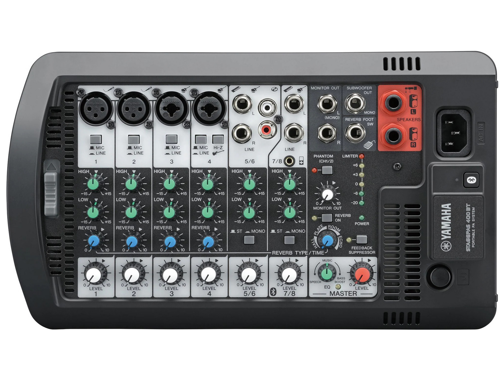 YAMAHA Professional Audio provides the perfect solution when it comes to portable live sound on the go!. Comparing to many other portable PA brands, It doesn't get any better than the Yamaha STAGEPAS series. With impressive power and sound quality, intuitive control, and a comprehensive array of flexible features, including a new Bluetooth® wireless audio streaming function, this all-in-one PA system builds on the Yamaha STAGEPAS legacy of providing everything you need to transform any environment into your own personal stage. Featuring a 400-watt (200W + 200W power output), portable PA system with 8-channel powered mixer, two 8" speakers, a Bluetooth® input, high resolution SPX digital reverbs, an onboard feedback suppressor and versatile EQ, there's plenty of volume for most small solo, duo or trio gigs, and is easy to transport around and set up, making it very popular for small café gigs, a convenient PA system for a conference, ideal for schools and community groups or just a solid system for a wild party. Oxygen Music are proud to stock many YAMAHA products including the STAGEPAS 400BT 400 Watt Portable PA System. Also available as STAGEPAS 600BT.